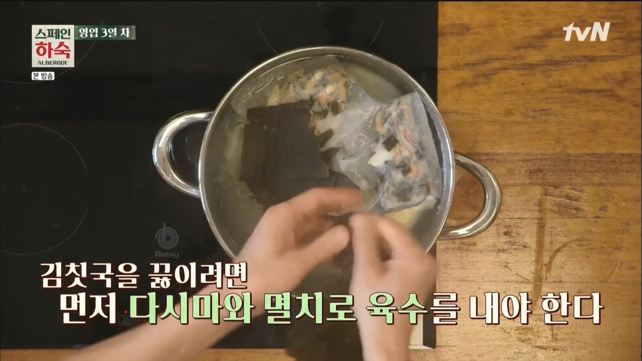 김칫국을 끓이기 위해 먼저 다시마와 멸치를 준비해주세요.