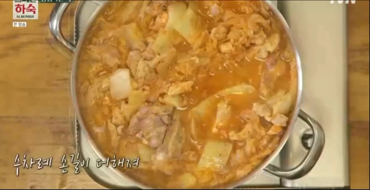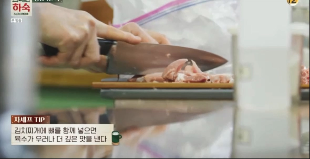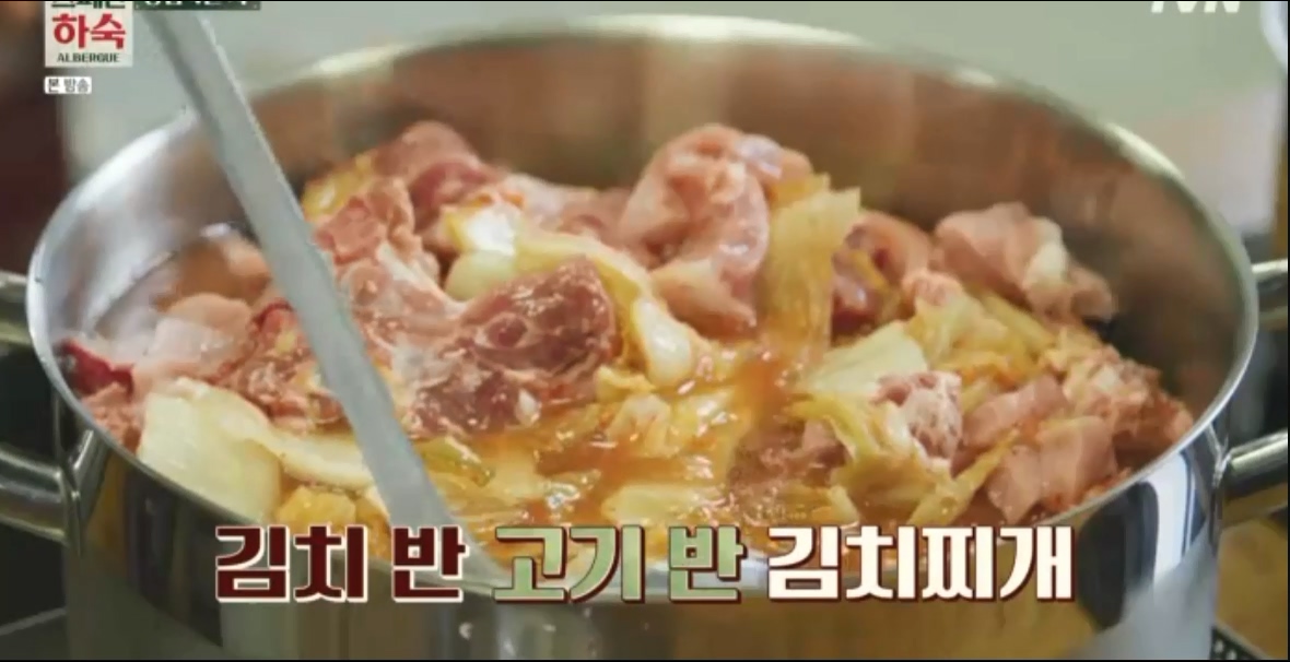김치찌개에 뼈를 함께 넣으면 육수가 우러나 더 깊은 맛을 낸다