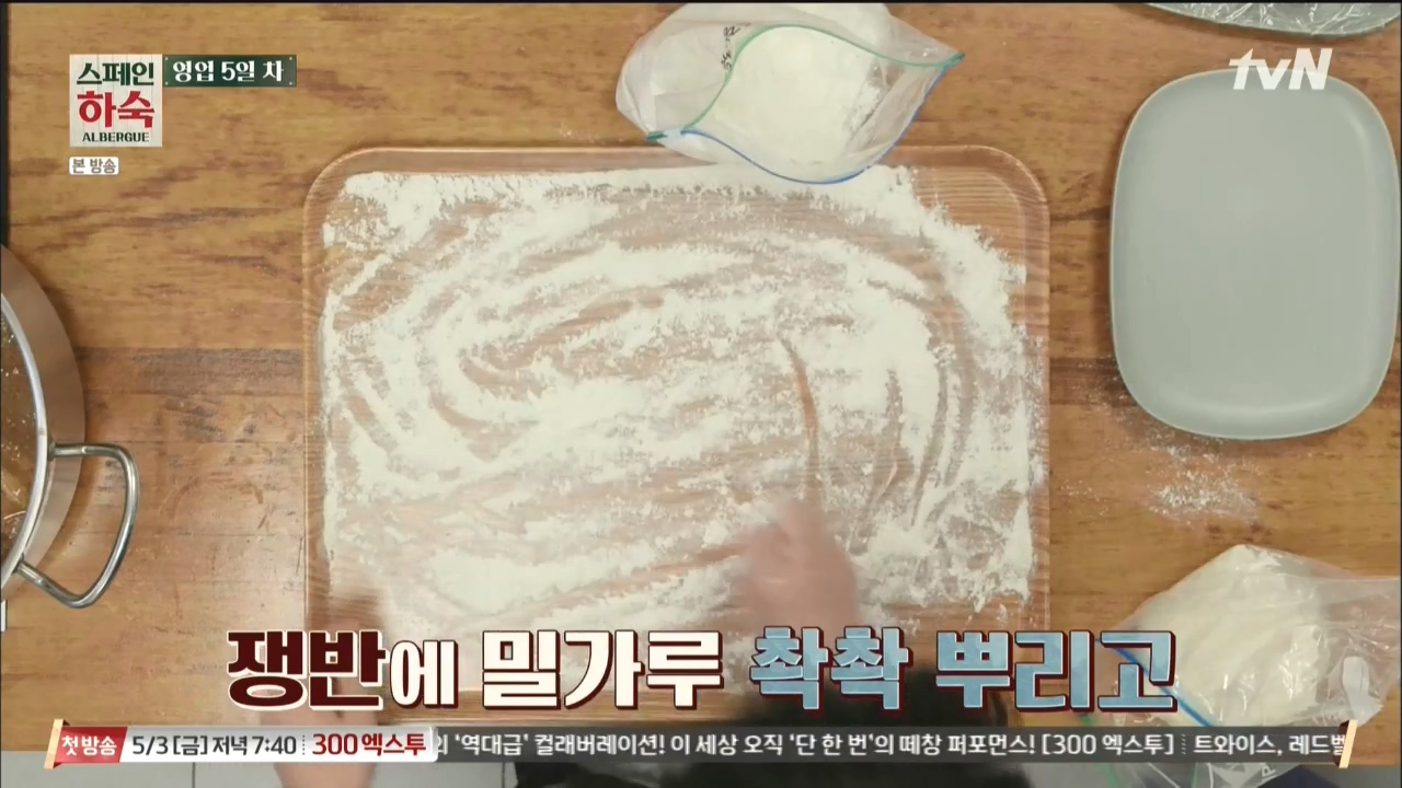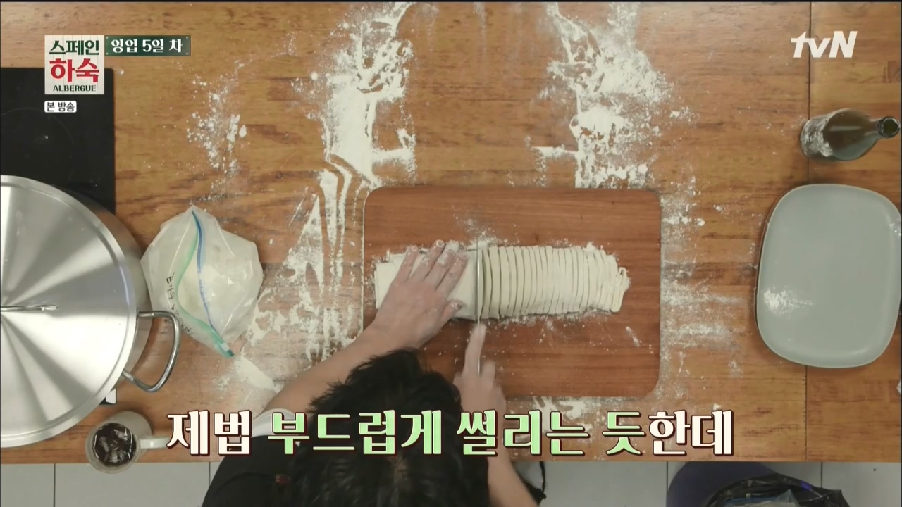 칼국수 면 준비 완료했는데 갑자기 손님이 많아지고 재료가 모자라서 칼제비로 변경되었네요. ㅎㅎ
