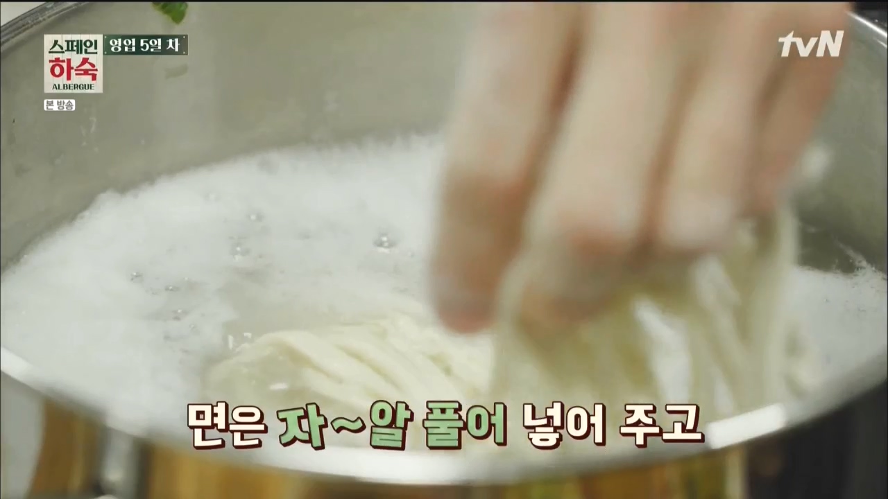 면은 잘 풀어서 넣어주고 5분 동안 삶아줍니다.