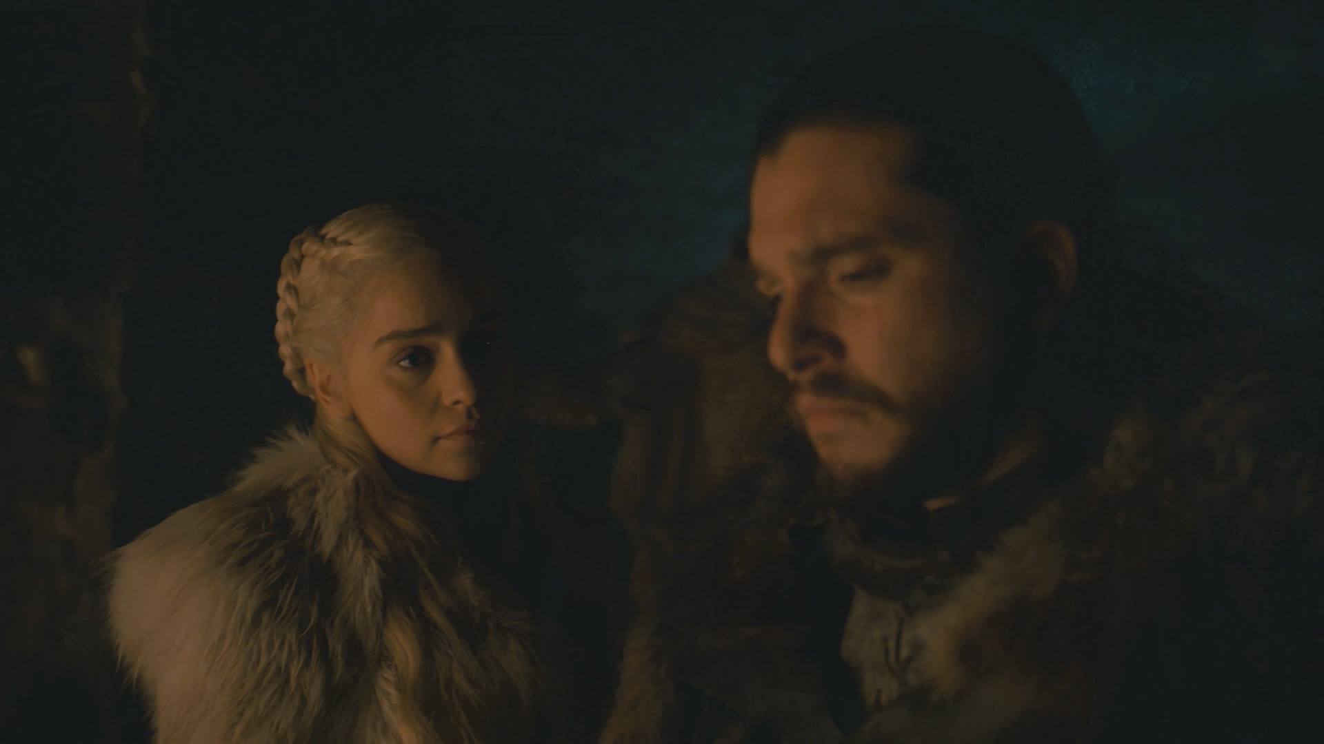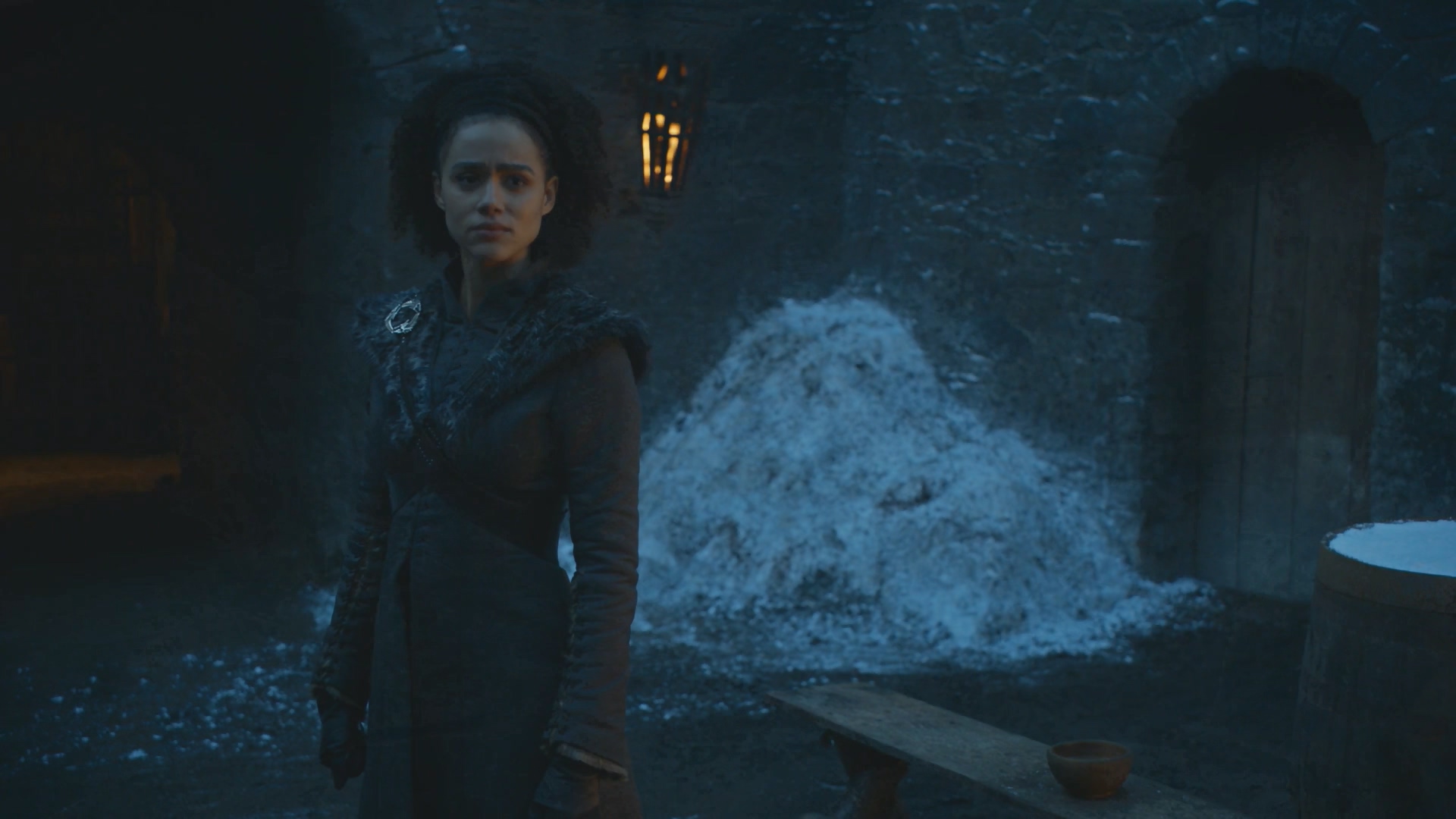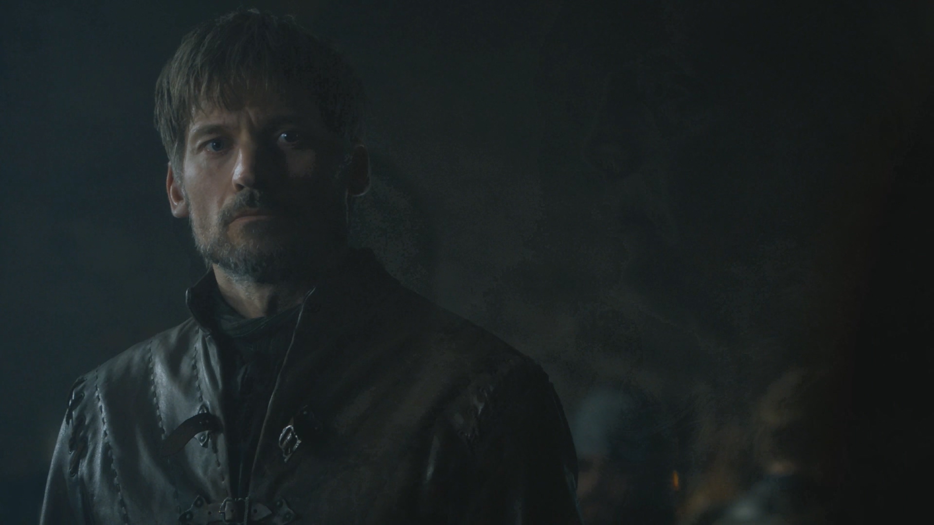 윈터펠에 도착한 제이미는 대너리스와 마주하지만 그녀는 제이미를 탐탁지 않아합니다. 그녀는 어릴 적부터 오빠에게 우리 아버지를 살해한 사람에 대한 이야기를 많이 들어왔다고 말합니다. 이어 그녀는 오빠가 말하기를 등 뒤에서 칼로 찌른 후 목을 베어내고 철 왕좌에 앉아 피 흘리는 것을 지켜봤다고 제이미에게 말합니다. 또 대너리스는 서세이가 북부로 군대를 보내기로 해놓고 내 앞에는 '한 손밖에 없는 사내'만 보냈다고 으름장을 놓습니다. 이어 대너리스는 제이미에게 서세이가 나에게 거짓말을 했다고 실망한 표정으로 말하자 제이미는 서세이는 내게도 거짓말했다고 북부에 군대를 보낼 생각조차 없었다고 하소연합니다.