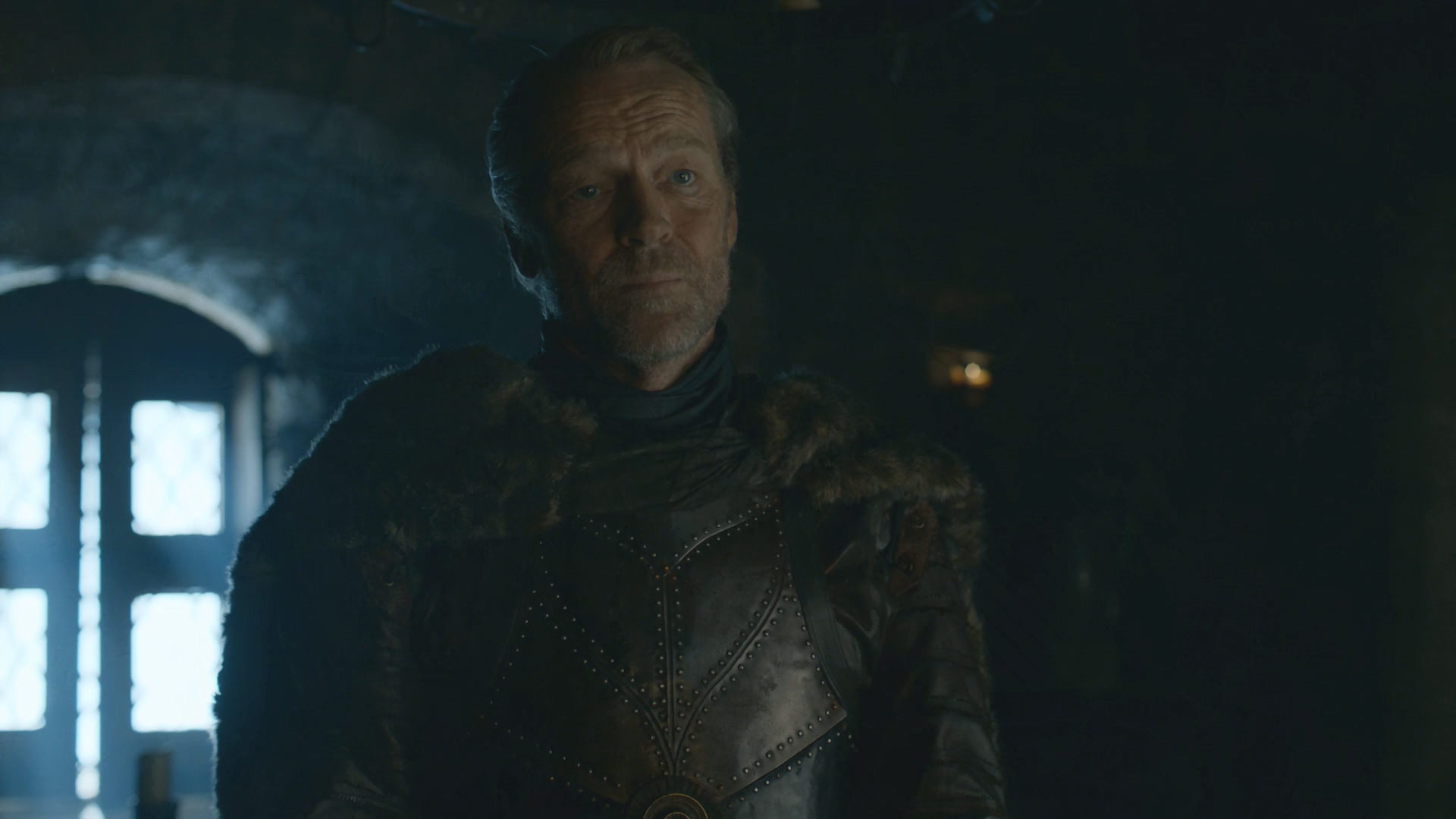 또한 서세이는 유론 그레이 조이의 병력 2만 명과 에수스 황금 용병단을 얻었다고 제이미가 말합니다. 만약 우리가 죽은 자 들을 다 죽이고 살아남아도 서세이는 남은 생존자들을 다 죽이고 남을 것이라고 말합니다. 제이미는 산사람들을 위해 싸우고 싶다고 말합니다. 이어 티리온이 형을 도와주려고 나서지만 대너리스는 티리온에게 크게 실망하여 말발이 잘 먹히지 않습니다. 이때 브리엔이 나서서 제이미의 신분을 변호합니다. 그 모습을 본 산사가 갑자기 끼어들어 브리엔이 제이미를 보증한다면 나도 믿을 수 있다고 말하면서 제이미를 받아들이기로 결정 합니다.