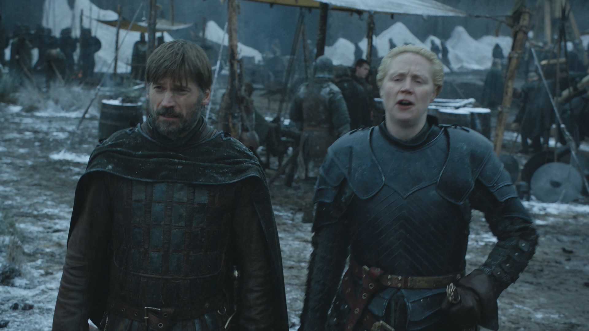 벽난로에 모인 사람들은 모두 스타크 가문을 위해 싸웠던 사람들이었습니다. 그리고 이들은 곧 죽은 자 들이 성에 도달하기를 기다리고 있습니다. 모두 두려운 기색을 내비치는 가운데 티리온이 하운드를 이긴 브리엔 경이라고 실수로 부르고는 사죄합니다. 그러자 브리엔은 나는 기사가 되고 싶지 않소라고 스스로를 넘기 힘든 벽에 가두려고 합니다. 그런데 이때 제이미가 기사도 작위를 내릴 수 있다고 브리엔을 불러 바로 기사 작위식을 수여하고 브리엔은 드디어 칠 왕국의 기사가 됩니다. 모두 기뻐 손뼉 치고 술을 마시고, 브리엔은 감격의 눈물을 흘립니다.