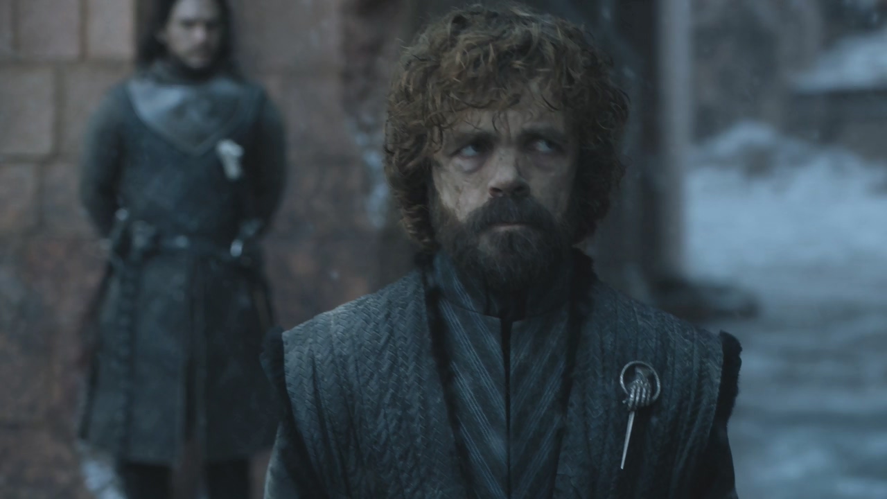 이 연설을 듣고있던 티리온은 대너리스에게 가서 해방시킨 것이 아니라 당신은 한 도시를 몰살시켰다고 말하면서 가슴에 붙어있던 배지를 떼어 바닥으로 던져버립니다. 대너리스는 티리온을 끌고 가라고 말합니다. 결국 티리온은 감옥에 갇히게 됩니다. 존스노우는 갇혀있는 티리온에게 찾아갑니다.