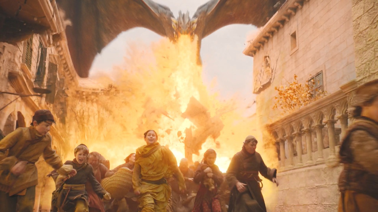 대너리스가 드로곤을 타고 폐허로 만든 건 '킹스랜딩'이 아니라 '왕좌의 게임 시즌8'이다.