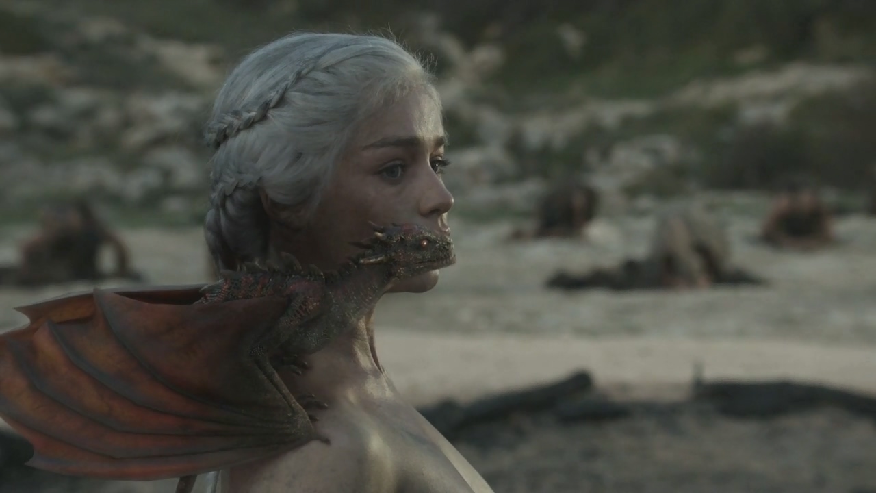 다시 시즌1이야기를 해보자면 대너리스는 오빠에게 농락당하고 도트라키에 팔려가기까지 합니다. 원치 않았던 결혼이지만 결국 남편을 사랑하게되고, 얼마 안 돼서 남편을 잃게 되지요. 남편이 죽고부터 도트라키 사람들에게 여왕으로 인정 받지도 못합니다. 하지만 시즌1 마지막 장면을 보고 소름 돋지 않았던 사람을 많지 않았을 거예요.