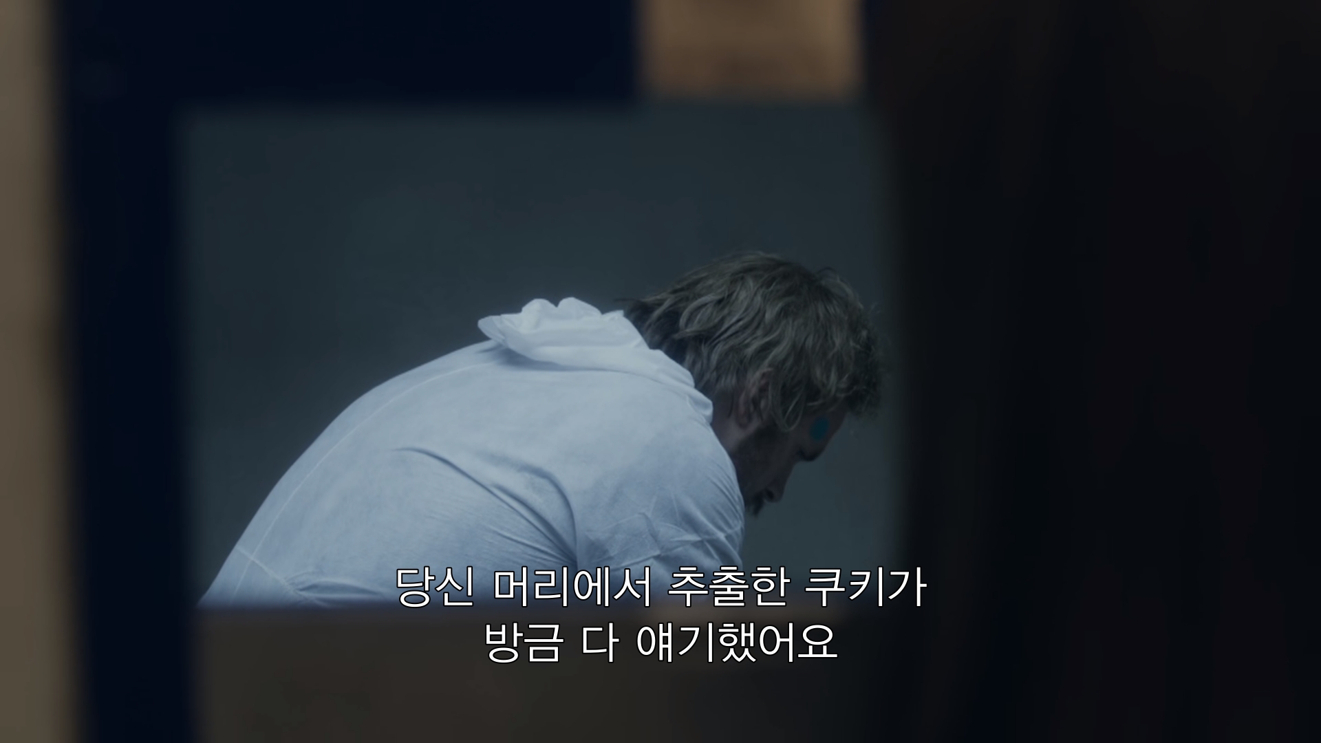 다시 장면은 오두막으로 돌아와서 '매슈'가 '조'에게 말하는 장면으로 돌아옵니다. "매슈는 보통은 한시간 지속되는데 계속 차단하면...이라고 말하다가 우리 모두 제드 아이를 이식했잖아요. 이런 일이 생기기 전까지는 좋기만 했는데"라고 말합니다.