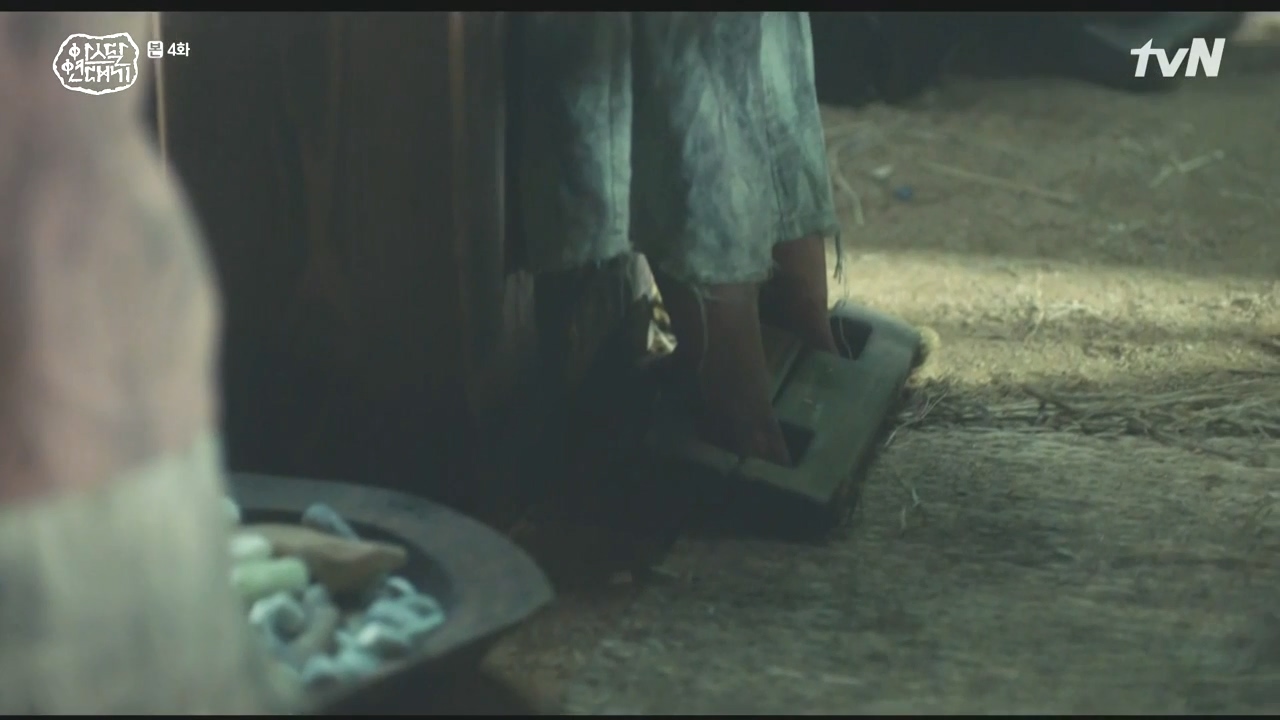 아이들의 발이 묶여 공장안에 갇혀 하루 종일 '공돌'을 생산하는 장면과 엄청나게 높은 절벽을 올라가기 위해 나무로 된 도르래식 엘리베이터를 노동자들이 만드는 장면이 나옵니다. 드라마에서 노동으로 희생당하는 사람들을 닭장에 갇혀 계속해서 알을 낳는 것과 비유하였습니다. 이처럼 기술이 발전한다는 것은 누군가의 노동이 강요되고 있고 그 희생으로 멋진 건물들과 최첨단 기술들이 발전하게 됩니다. 이 과정에서 빈곤층은 더욱더 가난하게 됩니다.