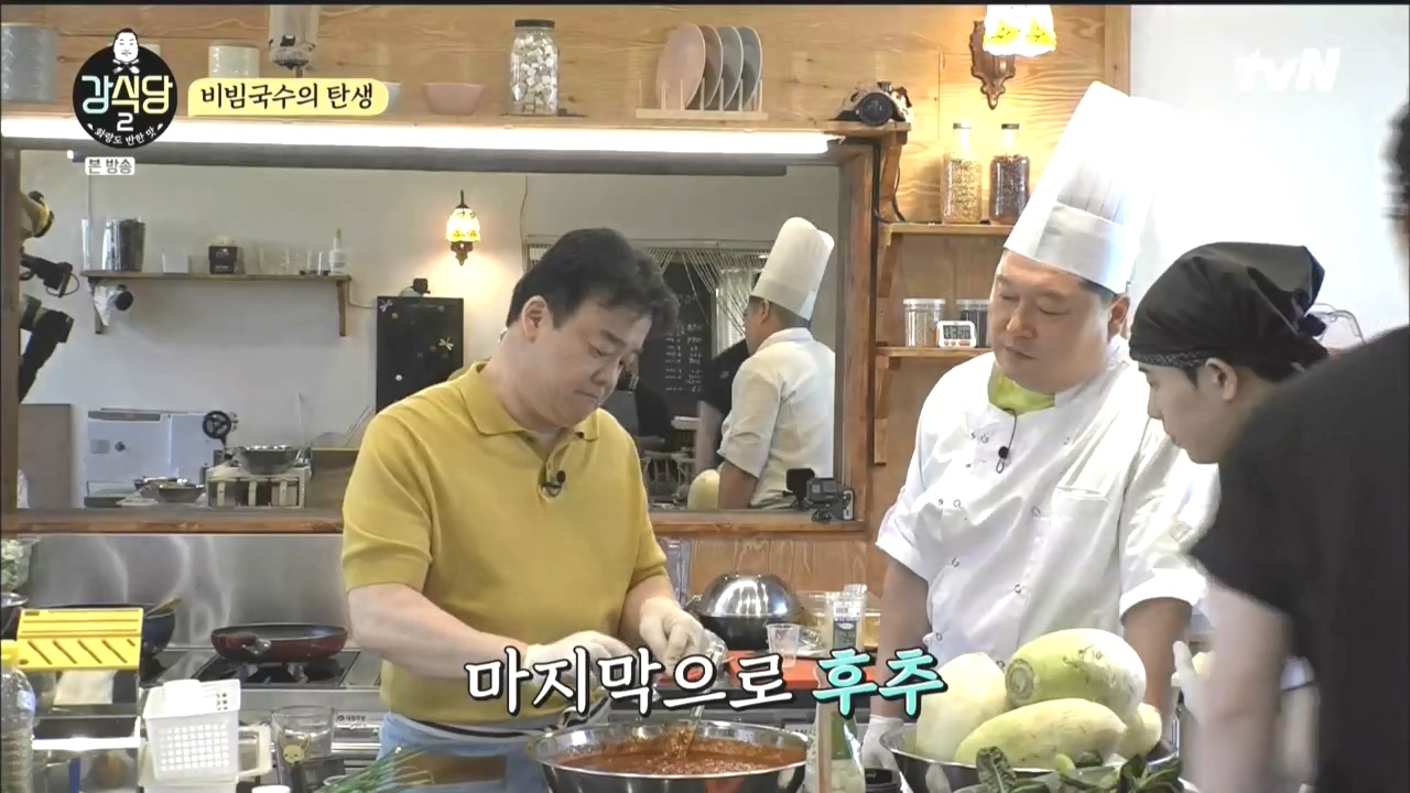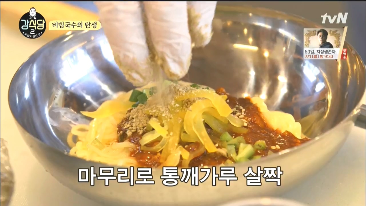 강식당에서 비빔국수가 나오는데, 굉장히 먹음직스럽게 생겼더라고요. 저도 먹어보고 싶은 마음에 언젠가는 해 먹겠지 생각하며 포스팅을 하게 되었습니다. 강호동이 백 선생님에게 배우는 과정은 골목식당을 방불케 해서 굉장히 재미있는 에피소드였어요^^
