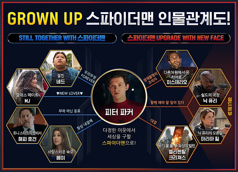 이쯤 되면 피터 파커는 헷갈립니다. 내가 피터 파커인지? 스파이더맨인지? 여행에서만큼은 MJ에게 고백하고 행복한 시간을 보내고 싶은데, 자꾸 스파이더맨의 그림자가 따라다닙니다. 그리고 피터 파커의 정체를 알고 있는 사람들은 피터 파커에게 자꾸 스파이더맨의 역할을 원합니다.