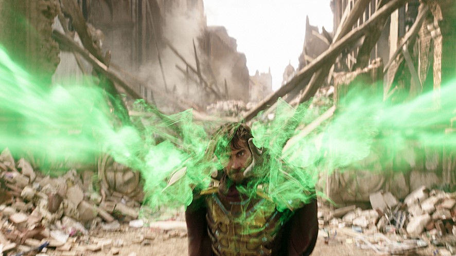 '미스테리오'와 '스파이더맨'의 1:1장면은 자신과의 싸움 같은 느낌이 나게 연출하였습니다. 굉장히 많은 스파이더맨이 나타나 서로 싸우는 모습은 피터 파커의 마음을 은유한 것 같았어요.