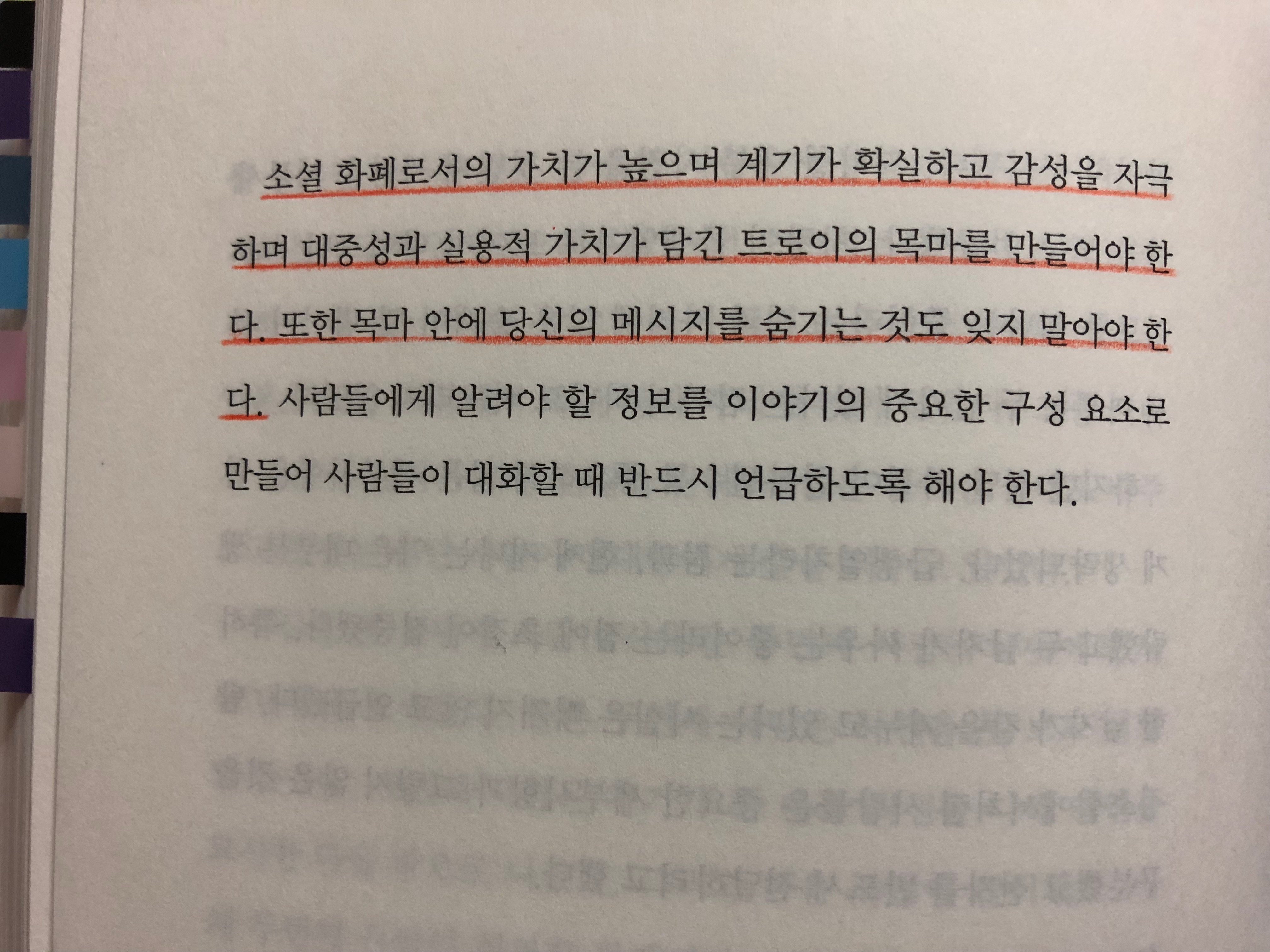 P324. 소셜 화폐로서의 가치가 높으며 계기가 확실하고 감성을 자극하며 대중성과 실용적 가치가 담긴 트로이 목마를 만들어야 한다. 또한 목마 안에 당신의 메시지를 숨기는 것도 잊지 말아야 한다.