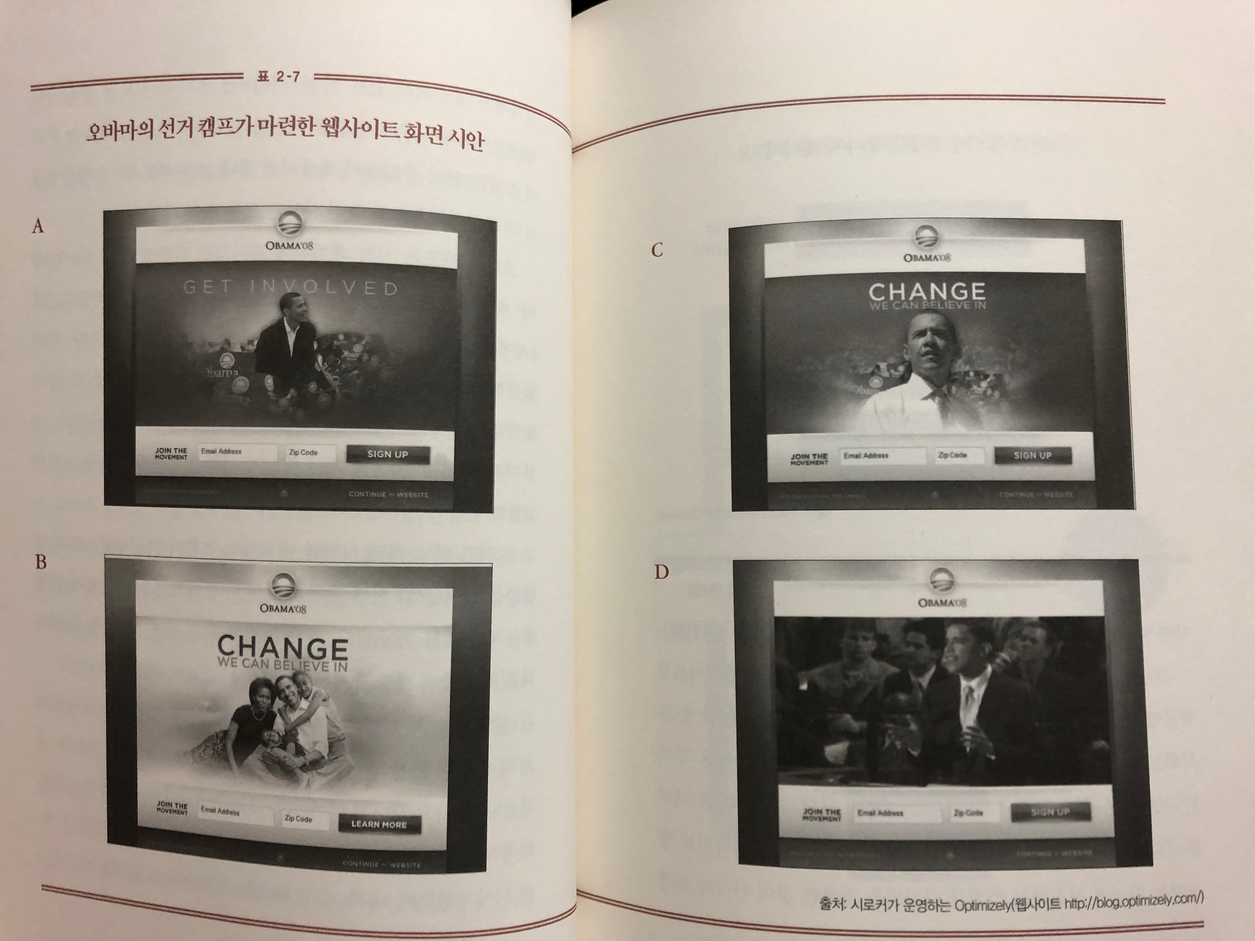 이 책에서 소개하는 사례중에 오바마 캠프가 후원금을 모으는 과정중에 RCT데이터 분석법을 어떻게 활용했는지 보여줍니다.