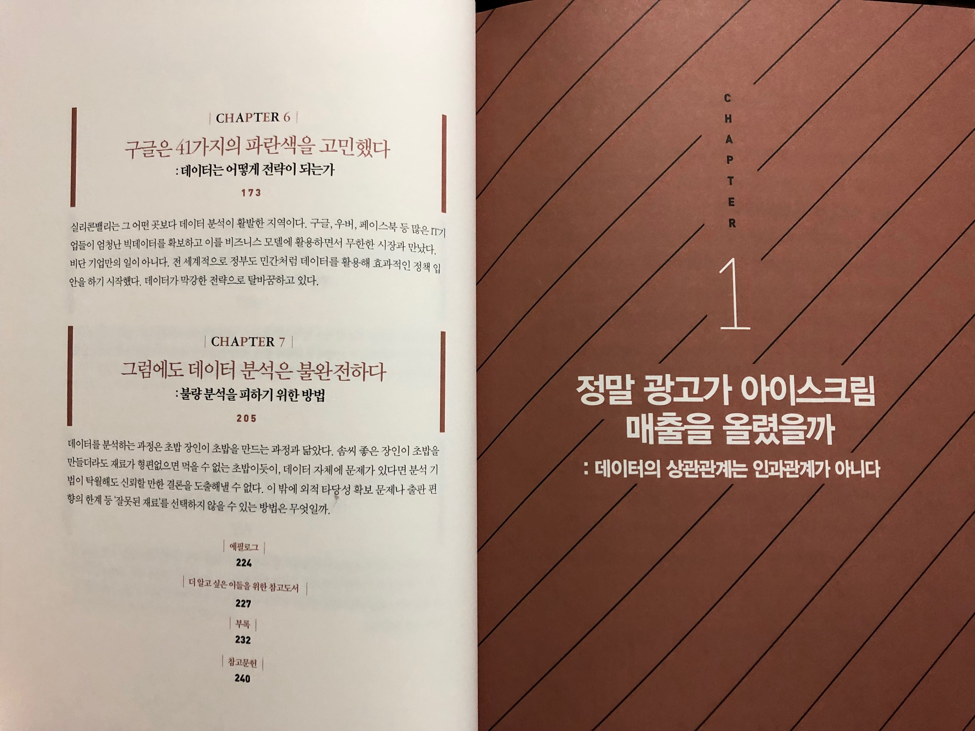이 책은 총 7개의 챕터로 구성되어 있습니다. 1장에서는 데이터에서 원인과 결과를 이끌어내기 어려운 이유를 설명합니다.