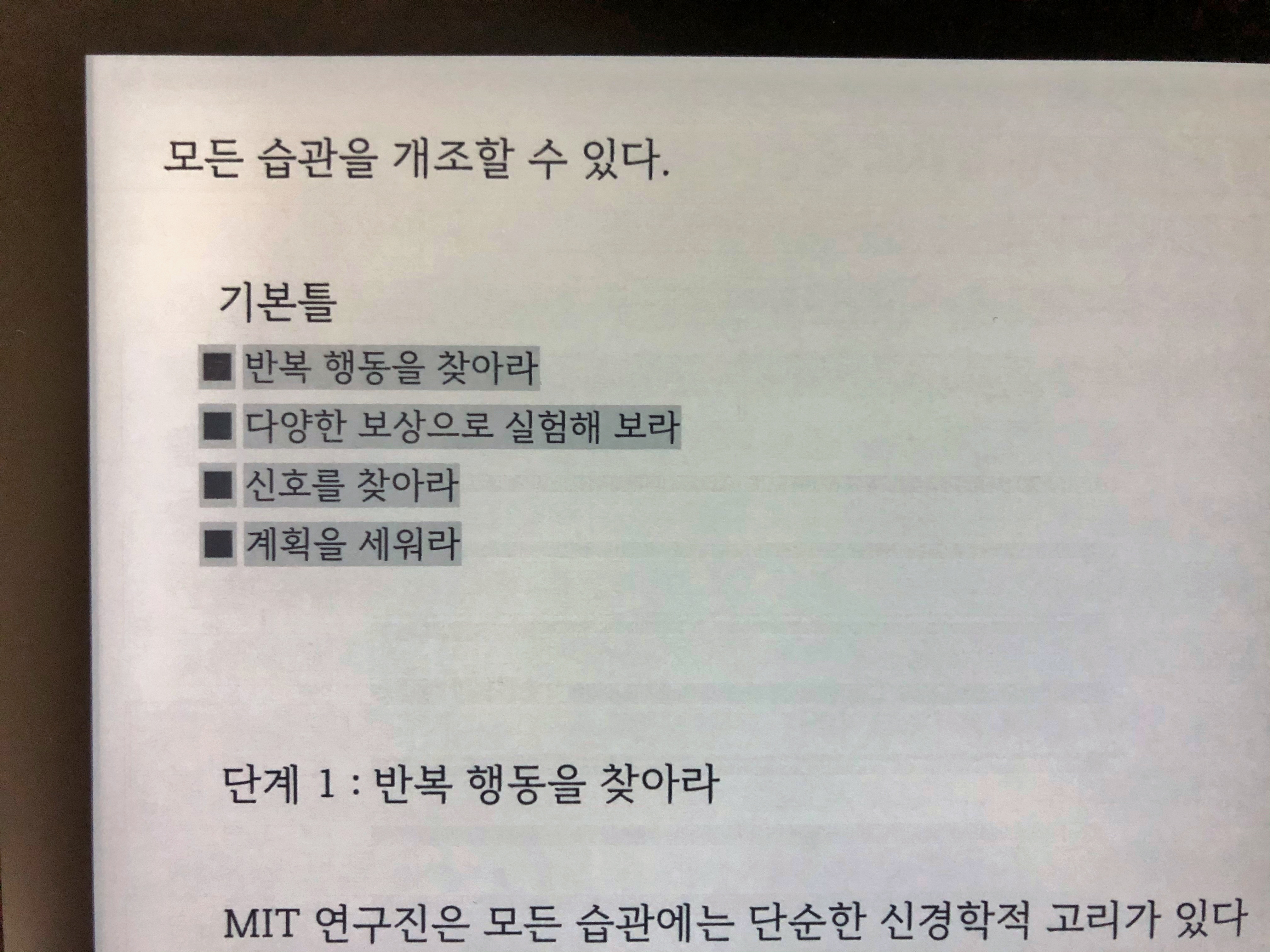 그러나 다이어트를 목적으로 운동을 시작했는데 보상을 음식으로 정하면 당연히 다이어트에 실패할 확률이 크다. 내가 이루려는 목표를 상쇄시키는 보상은 피해야 한다. 책에서는 좋은 습관을 만드는 방법과 나쁜 습관을 없애는 방법을 조목조목 잘 설명해준다.